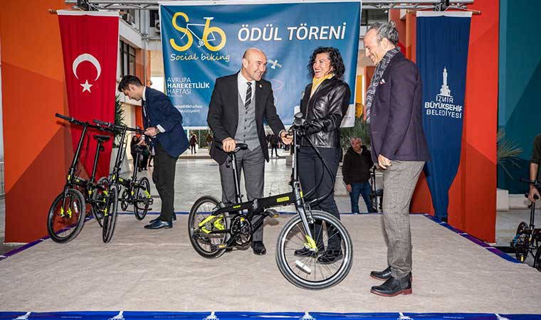 Avrupa Hareketlilik Haftası (EuropeanMobilityWeek) kapsamında Avrupa Komisyonu Ortak Araştırma Merkezi tarafından düzenlenen Sosyal Bisiklet Yarışması’nın ödül töreni bugün İzmir Büyükşehir Belediyesi’nde yapıldı. Yarışmada dereceye giren İzmirli bisikletçilere ödüllerini İzmir Büyükşehir Belediye Başkanı Tunç Soyer verdi.