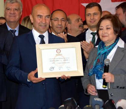 Heyecanla beklenen 31 Mart yerel seçimleri sonlandı ve yüzde 58.10 oy oranı ile Tunç Soyer İzmir'in yeni Büyükşehir Belediye Başkanı oldu. Sandıktan zaferle çıkan Soyer, bugün İzmir İl Seçim Kurulu'nda düzenlenen törenle mazbatasını aldı.