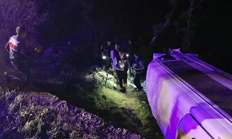 Turistleri taşıtan minibüs Nemrut Dağı yolunda şarampole yuvarlandı: 12 yaralı
