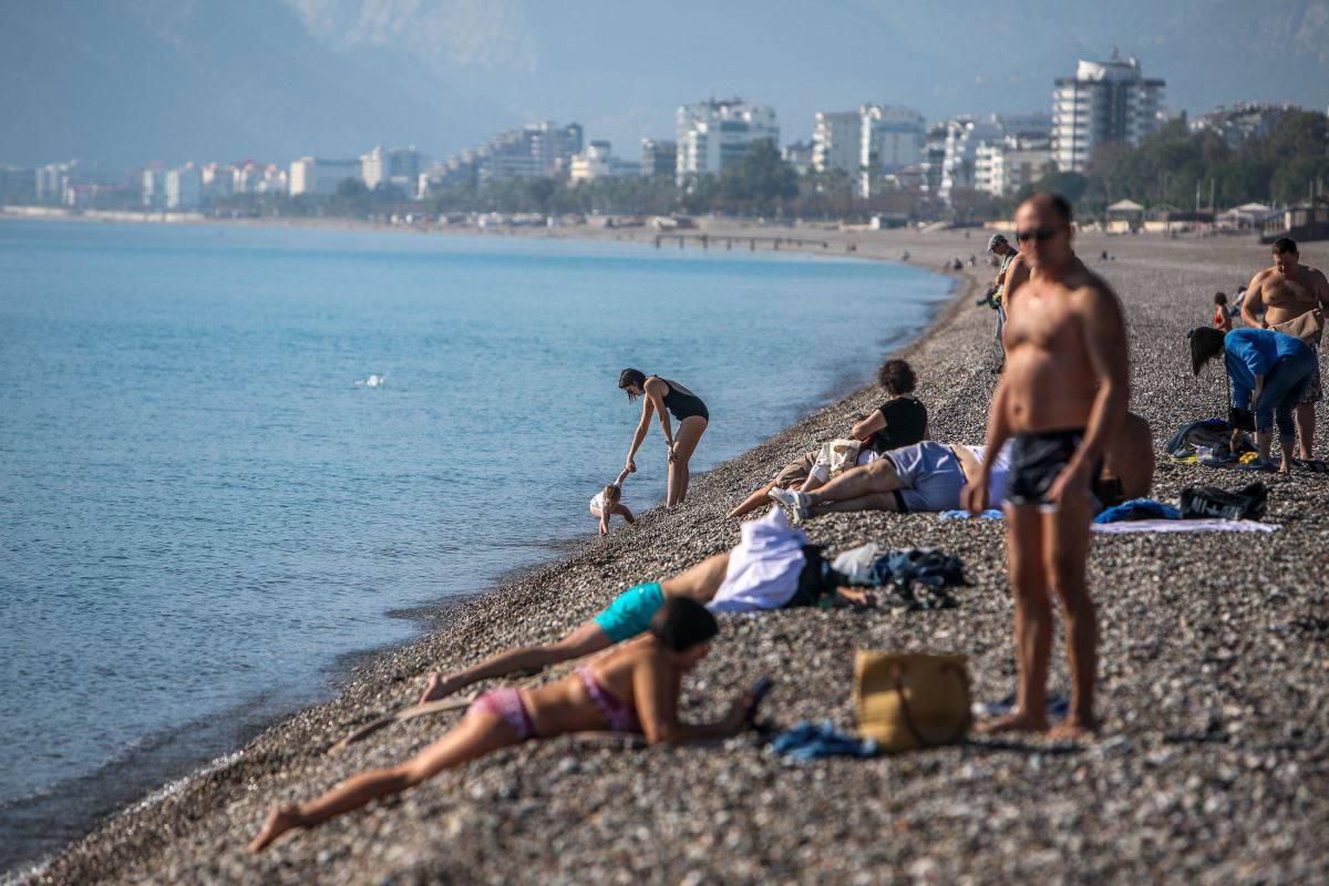 Hava sıcaklığının 20 dereceyi bulduğu kentte güneşin keyfini ise dünyaca ünlü Konyaaltı Sahili'ne gelen turistler çıkardı. Kısıtlamadan muaf olan turistlerin bazıları sahilde denize girerken, bazıları ise kumların üzerine uzanarak güneşlenmeyi tercih etti. Bazı yerleşik yabancılar ise evcil hayvanlarını sahilde gezdirdi.
