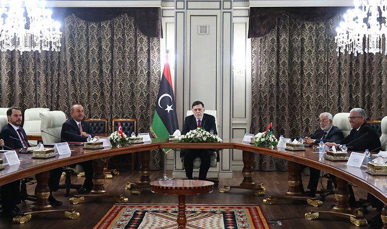 Dışişleri Bakanı Mevlüt Çavuşoğlu, Hazine ve Maliye Bakanı Berat Albayrak, MİT Başkanı Hakan Fidan ve Cumhurbaşkanlığı Sözcüsü İbrahim Kalın, Libya'nın başkenti Trablus'ta Libya Başbakanı Fayiz es-Serrac ile görüştü.