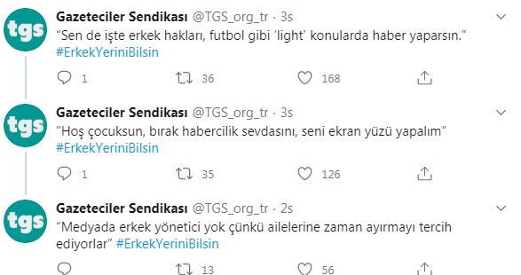 Gazeteciler Sendikası, medyadaki ayrımcı söylemlere #ErkekYeriniBilsin etiketiyle şöyle tepki gösterdi: