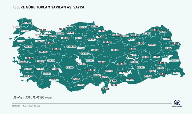 Türkiye Covid-19 aşı tablosu ve illere göre toplam yapılan aşı sayısı yayımlandı.