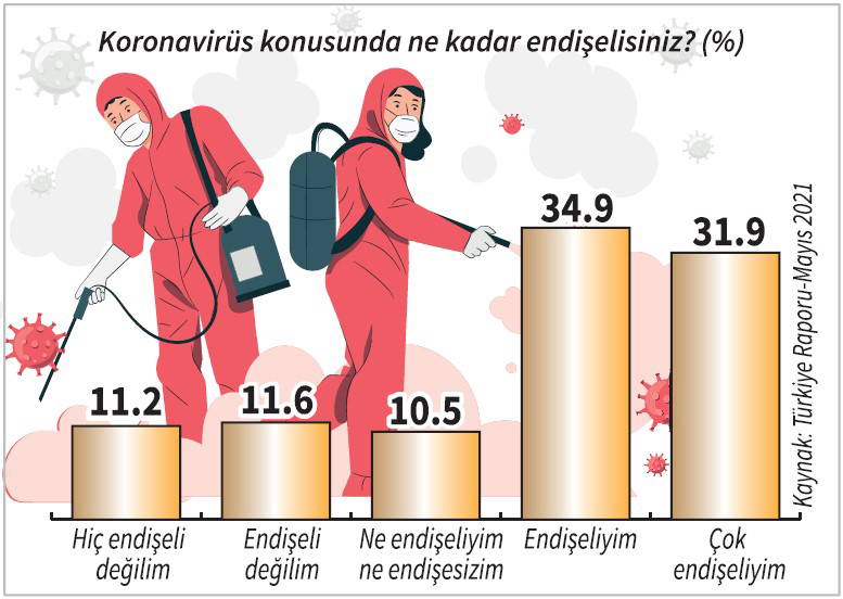 Şu anda toplumun tek konusu koronavirüs ve onun ekonomik ve sosyal etkileri. Biz Mart 2020’den beri her ay yaptığımız anketlerde bu konularda toplumun nabzını çok yakından tuttuk. İlk başlarda gayet iyi olan toplum algısı Nisan 2021’e geldiğimizde tam tersine dönüştü.