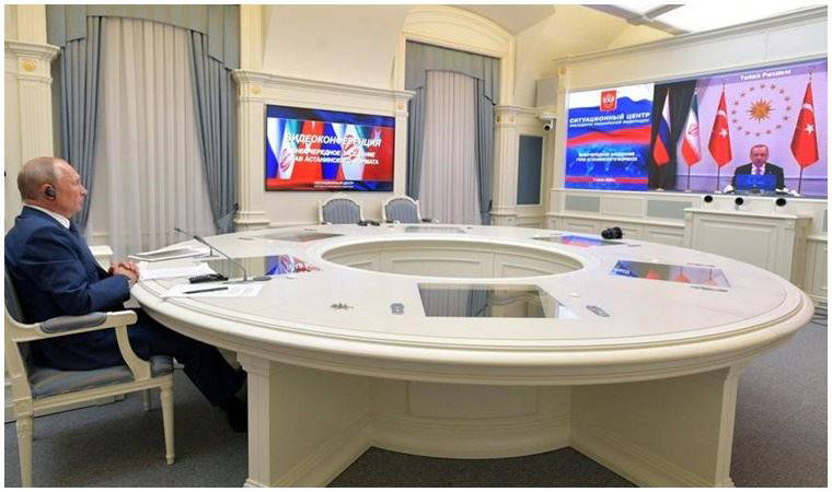 Kaosun ve şiddetin bitmek bilmediği Suriye’de çözüm için Rusya Devlet Başkanı Vladimir Putin, İran Cumhurbaşkanı Hasan Ruhani ve Cumhurbaşkanı Erdoğan, video konferans aracılığıyla bir araya geldi.