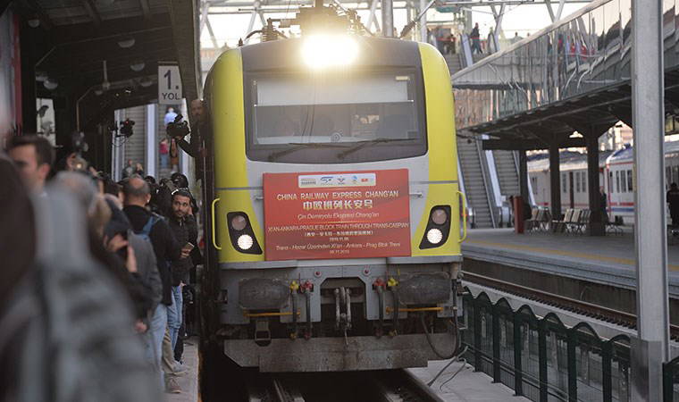 Çin’in Şian kentinden yola çıkarak Kazakistan, Azerbaycan ve Gürcistan’ın ardından 4 Kasım’da Kars üzerinden Türkiye’ye giriş yapan ve Çekya’nın başkenti Prag’a giden China Railway Express (Çin Demiryolu Ekspresi) adlı kargo treni, dün Ankara’ya ulaştı. 42 konteyner yüklü olan ve elektronik eşya taşıyan tren için Ankara Garı’nda karşılama töreni düzenlendi. Törene Ulaştırma ve Altyapı Bakanı Cahit Turhan, Ticaret Bakanı Ruhsar Pekcan ile Çin, Azerbaycan, Kazakistan ve Gürcistan’dan yetkililer katıldı.