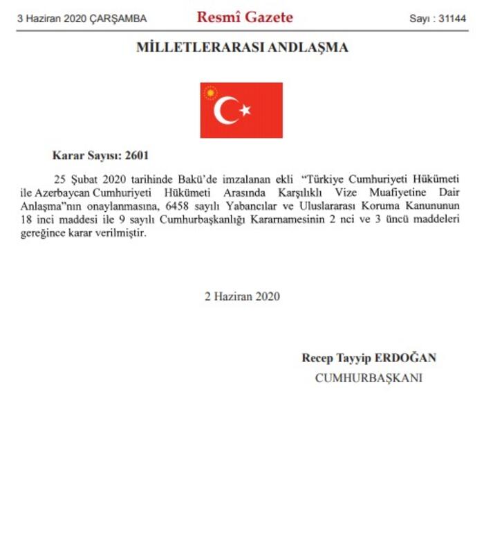 Türkiye ve Azerbaycan, imzalanan anlaşma ile karşılıklı olarak vize uygulamasını kaldırdıklarını duyurdu.