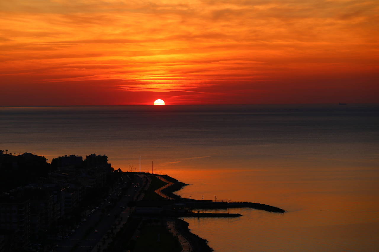 Güneşin batışının en güzel izlendiği bölgelerden birisi olan İskenderun Körfezi'nde ise gün batımının muhteşem manzarası objektiflere yansıdı.