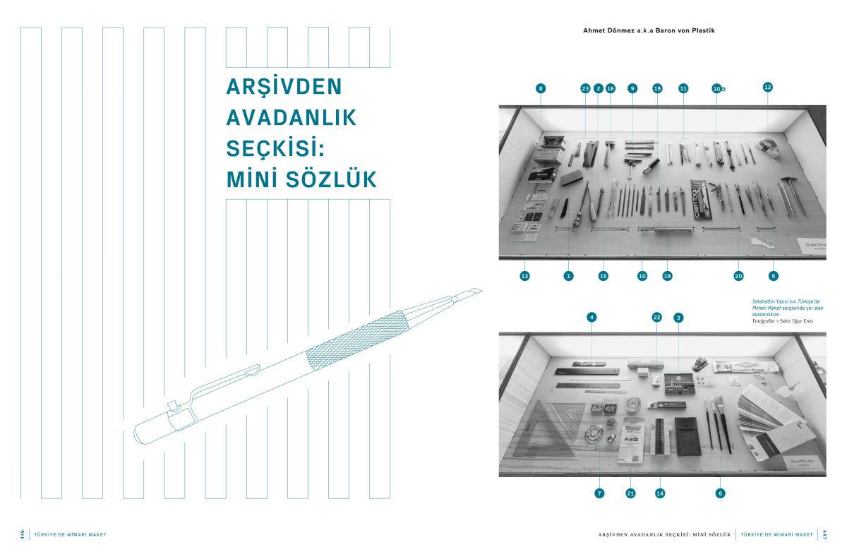 Maketin mimarlık pratiği, eğitimi, tarihi ve arşivindeki yerini ele alan metinlerin yanı sıra sekiz maket yapımcısının - Sami Pazarbaşı, Sidel Pazarbaşı, Yusuf Z. Ergüleç, Selahattin Yazıcı, Mehmet Şener, Varjan Yurtgülü, İhsan Kostak, Murat Küçük - yaşam öyküleri, profesyonel çalışmaları ve üretimlerinden oluşan bir seçkiyi kapsıyor.