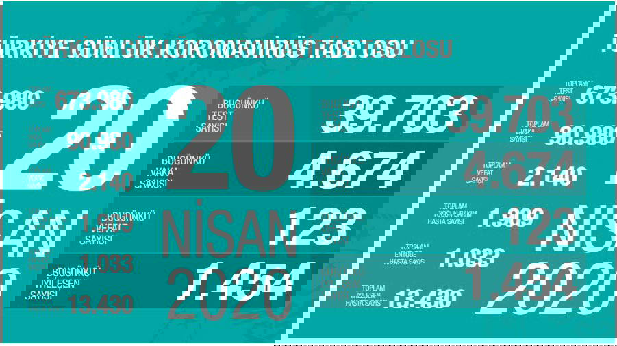 Bakan Koca'nın açıkladığı verilere göre bugün tespit edilen 4 bin 674 vakayla birlikte Türkiye'deki koronavirüs vaka sayısı da 90 bin 980'e ulaştı. İyileşenlerin sayısıysa güncel tabloda 13 bin 430 olarak kaydedildi.