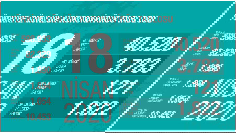 Sağlık Bakanı Fahrettin Koca'nın açıkladığı bilgilere göre Türkiye'de bugün 3 bin 783 pozitif vaka tespit edildi. Tespit edilen vakaların toplam sayısı bugünkü verilere göre 82 bin 329 oldu.