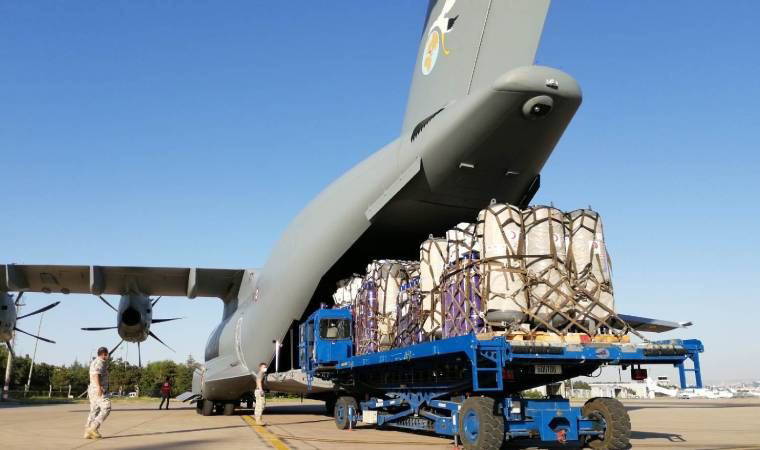 Türk Kızılay ve Sağlık Bakanlığı'nca hazırlanan 9 milyon 181 bin 789 lira değerinde 630 oksijen tüpü, 5 oksijen jeneratörü, 50 solunum cihazı ve 50 bin kutu tablet ilaç, Etimesgut Askeri Havaalanı'nda Türk Silahlı Kuvvetlerine ait iki A 400M tipi nakliye uçağına yüklendi.
