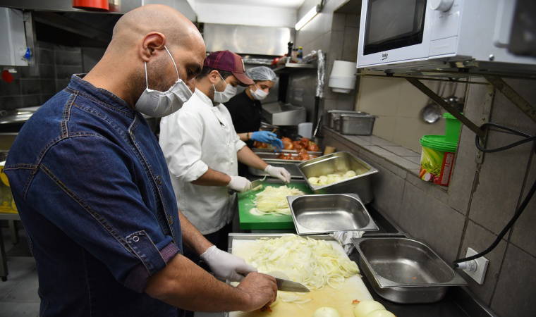 Şef Umut Karakuş: “Bu süreçte yemek yapmaya nasıl devam edebiliriz, yaptığımız yemekleri kimlere ulaştırabiliriz diye düşünürken Kadıköy Belediyesi ile iletişime geçtik. Günlük 1200 kişiye yemek yapmaya hazır bir ekibe sahibiz. Aslında burada şef yemeği yapmıyoruz, alışık olmadığımız şeyleri yapıyoruz, ‘Anne yemeği’, bir nevi karavana yapıyoruz. Mesela sabahtan beri 50 kilo soğan doğradık. Bu sürecin en büyük faydası, hepimiz anne mutfağına döndük, hepimiz evde yemek pişirmeye ve evde yemek yemeğe başladık. Evlere de anne mutfağından yemekler yollayacağız.