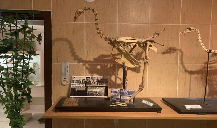 Kemik parçalarını incelerken bir parçanın dikkatini çektiğini aktaran Ekim, “Parçanın altında ‘Bu hindi 1945 yılında Amerikan Başkanı Harry Truman tarafından Reis-i Cumhur İsmet İnönü’ye hediye edilmiştir ve tavukçuluk araştırma enstitüsünde kullanılmıştır’ yazıyor. İnönü bu hindi öldükten sonra kadavrasını veterinerlik fakültesine araştırmalar için devrediyor” diyor. Buradan çocukların ders çalıştıkları bölüme geçiliyor. Burada 1843’ten kalma kemikler ve çocukların boyadığı hayvan kemikleri sergileniyor. Bu bölümden de serginin ikinci salonuna geçiliyor.