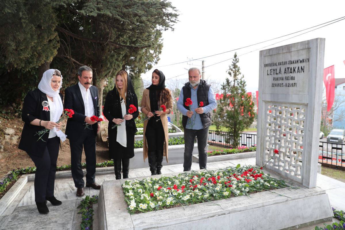 Geçtiğimiz hafta İzmit'te gerçekleşen lansmana katılan oyuncu, ölümünün 50. yılında Leyla Atakan'ı da İzmit Belediye Başkanı Fatma Kaplan Hürriyet ile birlikte mezarı başında anıp çiçek bıraktı.