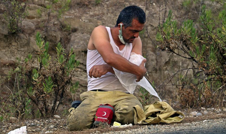 Paylaşımda, "Yaralanan kolunu kendi sarıp, bir ağaç daha kurtarabilmek için görevine koşan kahramanımız Cihan Toşur. Aynı gayretle dur durak bilmeden Yeşil Vatan'ımızı savunan tüm kahramanlarımızla gurur duyuyoruz. Elinize, emeğinize sağlık" ifadeleri kullanıldı.
