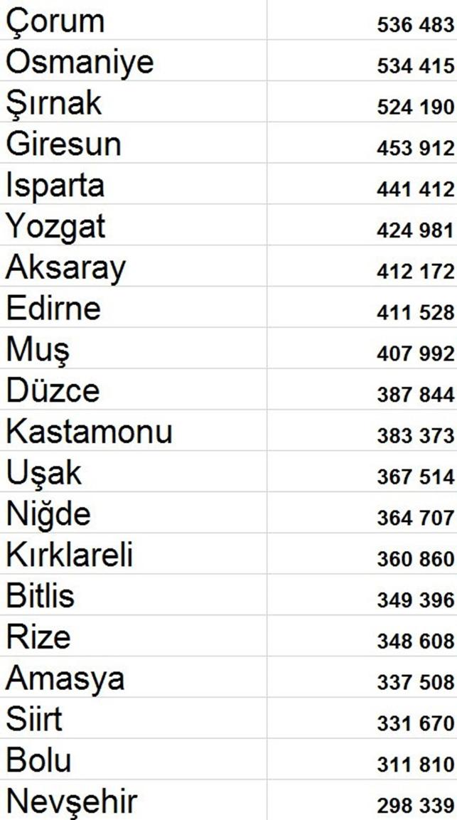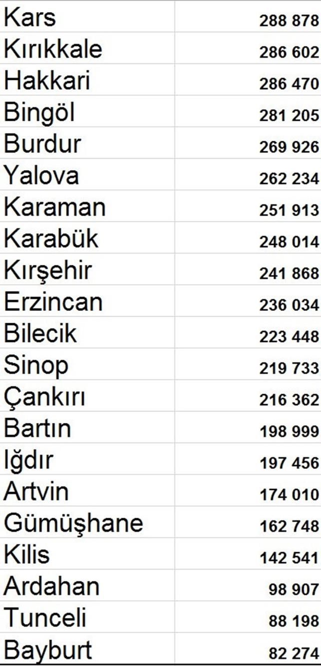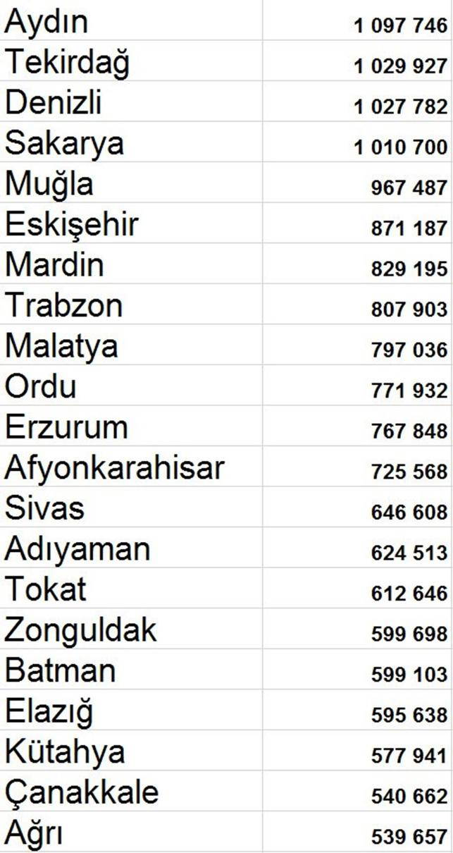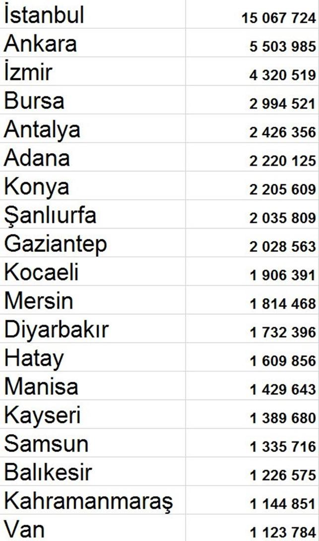 İŞTE İL İL TÜRKİYE'NİN NÜFUSU