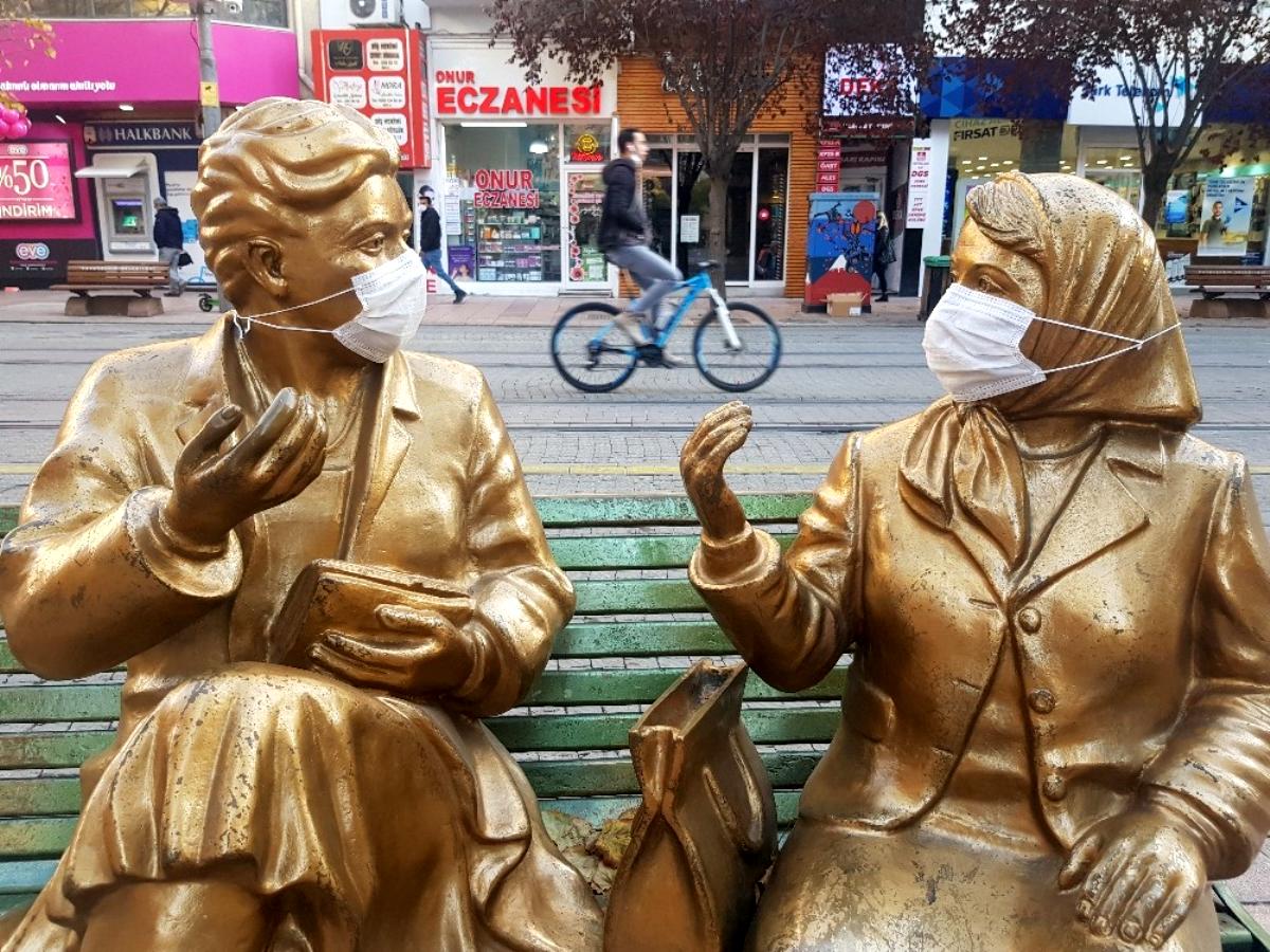 Eskişehir’de bankta oturan kadın heykelleri büyük ilgi görüyor.