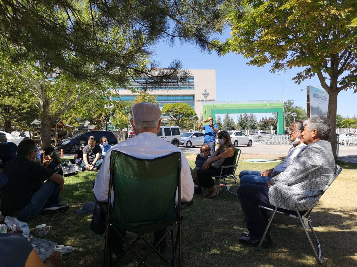 Sincan Cezaevi’nde tutuklu bulunan Gazeteci Müyesser Yıldız’ın arkadaşları, Anayasa Mahkemesi’ne yapılan hak ihlali başvurusunun bir an önce sonuçlanması talebiyle Yüksek Mahkemenin karşısında bulunan Atatürk Parkı’nda buluştu. Müyesser Yıldız’ın ailesi ve dostları, Yıldız’ın çok sevdiğini belirttikleri simit ve çay yedi, 15 dakika boyunca sessiz kalarak Yıldız’ın tutukluluğuna dikkat çekti.