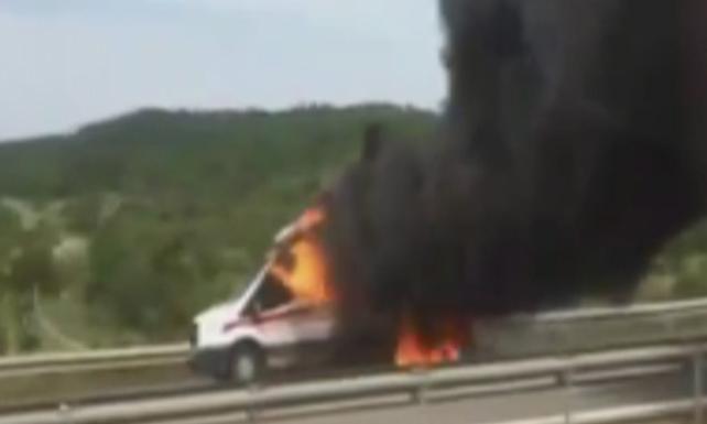 Silivri TEM Otoyolu’nda bir ambulans içerisindeki oksijen tüpünün patlamasıyla aniden alev aldı. Ambulanstaki personel son anda kendini dışarı atarken, küvezde olduğu öğrenilen 3 aylık bebek yanarak hayatını kaybetti. Olayla ilgili 3 sağlık görevlisi ifadelerine başvurulmak üzere gözaltına alındı.