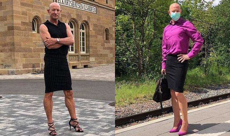 61 yaşındaki mühendis, "Etekleri elbiselere tercih ediyorum. Çünkü elbiseler, cinsiyetleri karıştırmama izin vermiyor. Bel üzerinde 'erkeksi', belin altında da cinsiyetsiz bir görünüm tercih ediyorum" ifadelerini kullanıyor.