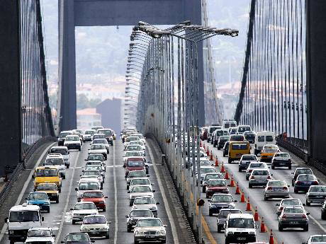 90 bin araç kapasitesine sahiptir. Fatih Sultan Mehmet Köprüsü ise 120 bin araç/gün kapasitesine sahiptir. Yani iki köprünün normal hizmet kapasitesi 210 bin araç/gündür. Buna mukabil, şu sıralarda köprülerden bir günde geçen araç miktarı 430-440 bin civarındadır. Bazı özel günlerde bu 460 bine kadar çıkmaktadır.”