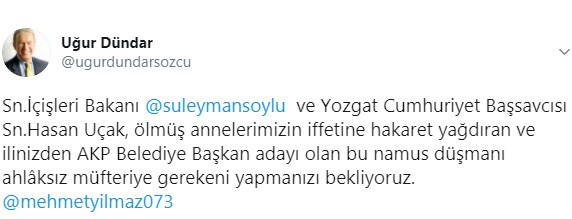 İsmet İnönü için “Kur-an’ı yasakladı. Kur-an’ı yakarak imha etti. Allah demesini yasakladı. Hacca gitmeyi yasakladı” iftirasında bulunan Altuntaş’ın Uğur Dündar, Yılmaz Özdil ve Müjdat Gezen için de ağza alınmayacak küfürler ettiği ortaya çıktı.