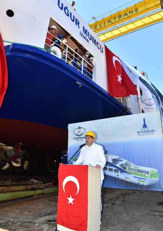 İzmir Büyükşehir Belediyesi toplu ulaşımda deniz taşımacılığının payını artırmayı ve filoyu modern, çevreci, engelli kullanımına uygun gemilerle genişletmeyi sürdürüyor. Büyükşehir Belediyesi tarafından İZDENİZ'in filosuna dahil edilmek üzere inşası İstanbul Tuzla Tersanesi’nde Çeliktrans Denizcilik Şirketi tarafın yapılan Uğur Mumcu Arabalı Vapuru'nun karadaki çalışmaları tamamlandı. Vapurun ilk kez denize indirilmesi nedeniyle Tuzla Tersanesi’nde tören düzenlendi. Törene İzmir Büyükşehir Belediyesi Genel Dr. Sekreteri Buğra Gökçe, Genel Sekreter Yardımcısı Eser Atak, İZDENİZ Yönetim Kurulu Başkanı Prof. Dr. Ufuk Tutan, İZDENİZ Genel Müdürü İlyas Murtezaoğlu, Çeliktrans Denizcilik Yönetim Kurulu Başkanı Ahmet Ötkür ve işçiler katıldı.