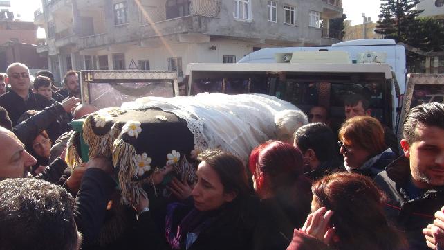 Burada helallik alınmasının ardından Samandağ Asri Mezarlığı'na getirilen Yıldız'ın gelinlik sarılan tabutu, kadınların omzunda musalla taşına konuldu.