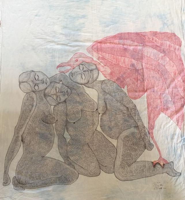 Bir gece oturduk, düşündük ne yapayım diye. 26 yıldır tutuklu Songül, ‘üç kadın, bir de kuş kadın yap’ dedi. Ben Şemal, Rukiye, Kulilk bir gecede bu resmi yaptık sizin için...