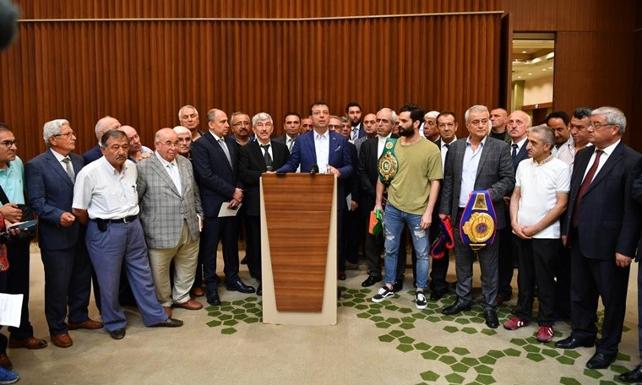 Toplantıda bulunan Milli Boksör Alptuğ Öner de, İmamoğlu’na eldiven hediye etti. İmamoğlu, “Birkaç saniyeliğine boksör olacağım. Gerçek başarıların, sporcuların yanındayız. Bilgim var başarılarınızdan. Dünyanızdan, bakışınızdan da bilgim var. Tebrik ediyorum.” ifadelerini kullandı. Eldivenleri giyen İmamoğlu ve Öner objektiflere poz verdi.