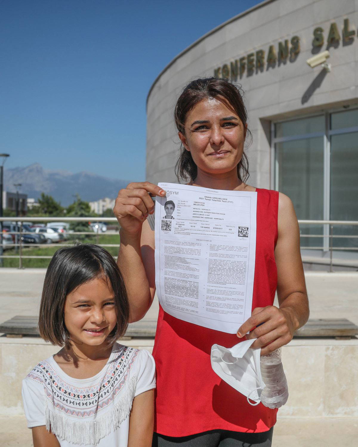 Annesinin sınavının bitmesini dışarıda dayısıyla birlikte bekleyen İkra Nur İpek ise "Çok heyecanlıyım, anneme başarılar diliyorum" diye konuştu.