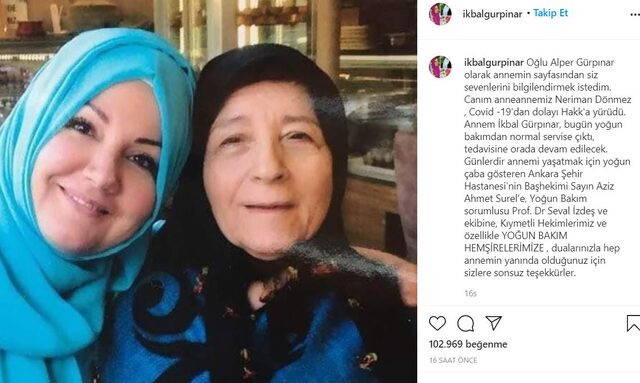 Gürpınar'ın oğlu acı haberi şu sözlerle duyurdu: "Oğlu Alper Gürpınar olarak annemin sayfasından siz sevenlerini bilgilendirmek istedim. Canım anneannemiz Neriman Dönmez, Covid -19'dan dolayı Hakk'a yürüdü¨. Annem İkbal Gürpınar bugün yoğun bakımdan normal servise çıktı, tedavisine orada devam edilecek."