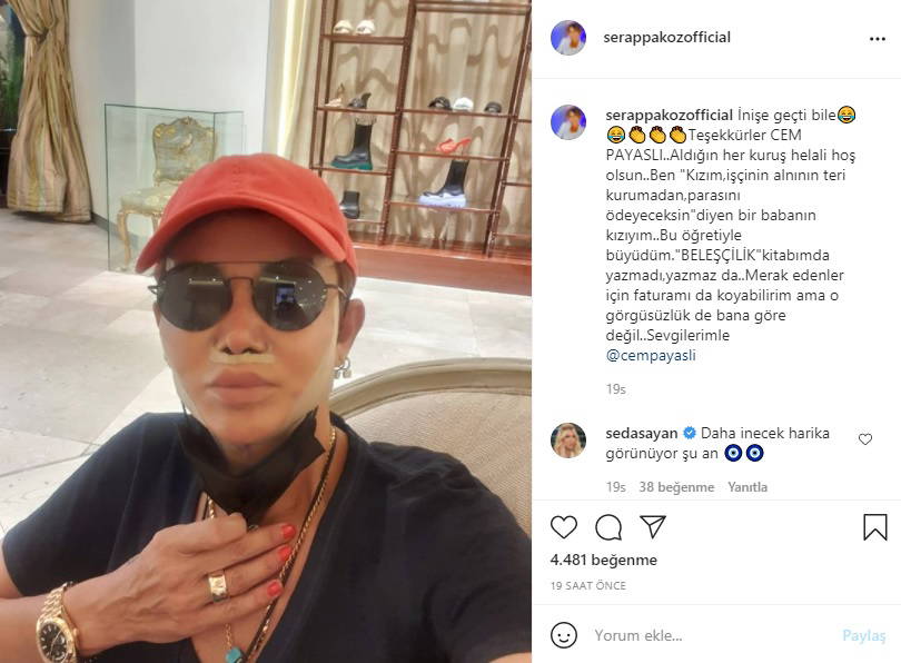 Eleştirilere sosyal medyadan yanıt veren Paköz, "Ben, 'Kızım, işçinin alnının teri kurumadan, parasını ödeyeceksin' diyen bir babanın kızıyım. Bu öğretiyle büyüdüm. Beleşçilik kitabımda yazmadı, yazmaz da. Merak edenler için faturamı da koyabilirim ama o görgüsüzlük de bana göre değil! Sevgilerimle..." dedi.
