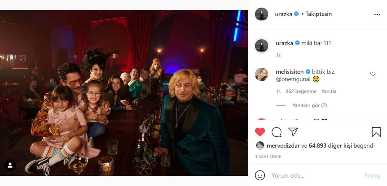 Ünlü oyuncu, dizi setinde çekilmiş bir kareyi sosyal medya hesabından paylaştı. Kaygılaroğlu'nun 'Miki bar 81' notunu düştüğü paylaşım, Instagram'da kısa sürede çok sayıda beğeni ve yorum aldı.