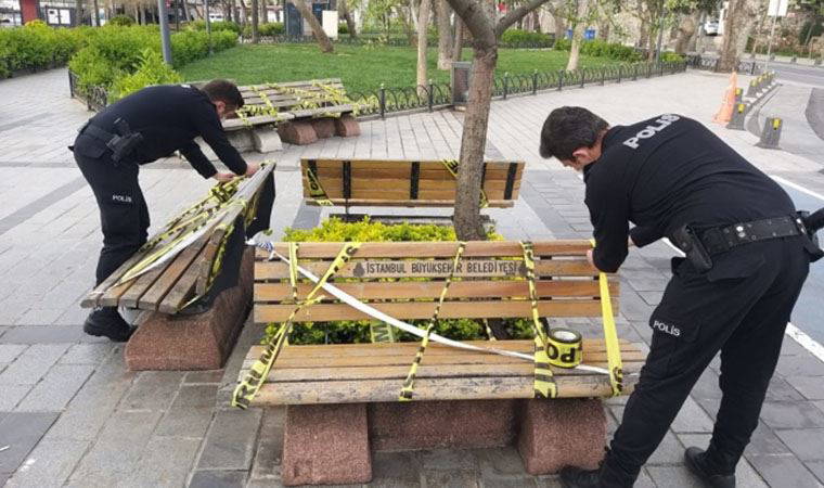 Bu vatandaşlara sosyal mesafeyi korumaları ve eve gitmeleri yönünde uyarıda bulunan polis ekipleri, vatandaşların dağılmaları üzerine banklara şerit çekti.
