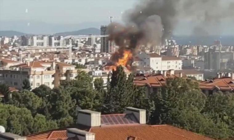 Binanın çatısında çıkan yangın ve patlama anı bir vatandaş tarafından cep telefonu kamerasınca kaydedildi.