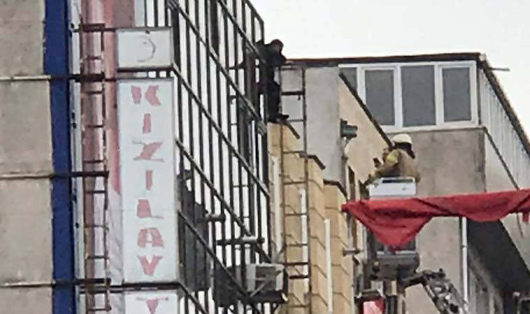 Öte yandan itfaiye merdiveni aracılığıyla bir uzman yurttaşın yanına çıkarak, ikna etme çabalarına girdi.
