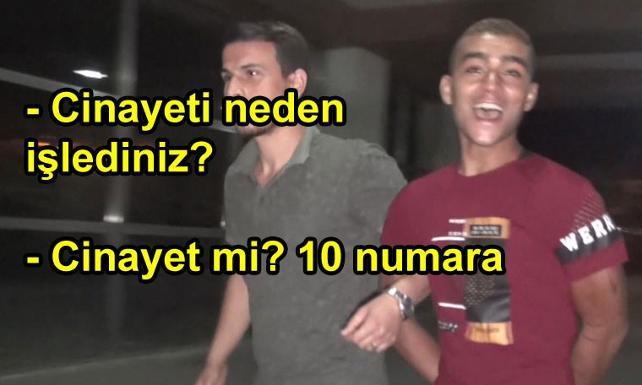 Şüphelilerden Derman N., gazetecilerin "Cinayeti neden işlediniz?" sorusuna gülerek, ''Cinayet mi? 10 numara'' yanıtını verdi. "Pişman mısınız?" sorusuna ise ''Barbie, barbie'' diyerek yanıtladı. Şüpheli Kerem N. de "Pişman mısınız?" sorusu karşısında gülümseyerek, "Değilim" dedi.