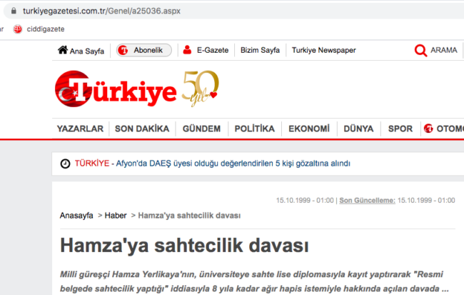 Kariyerinde ulaşılması güç bir spor geçmişi olan Hamza Yerlikaya’nın uzmanlığı dışındaki alanlarda görev yapması, eğitim durumunu gündeme getirdi. Türkiye Gazetesi’nin arşivinde yer alan bir haberde, Hamza Yerlikaya’nın 1999 yılında sahte diploma nedeniyle hakim karşısına çıktığı belirtiliyor.