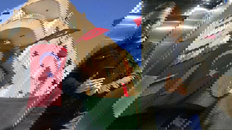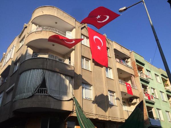 Üstüner çifti, 2 çocuklarından birini kaybetmenin acısını yaşarken, ailenin yaşadığı binaya Türk Bayrağı asıldı.
