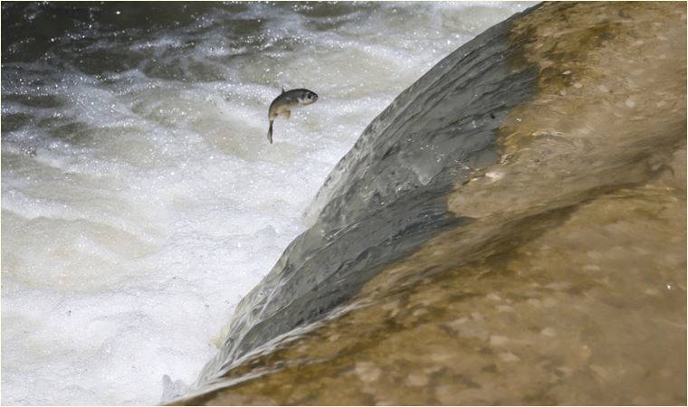 Her yıl 15 Nisan-15 Temmuz'da üremek için göle dökülen derelere akın eden inci kefallerinin eşsiz görüntülere sahne olan "zorlu yolculuğu" devam ediyor.