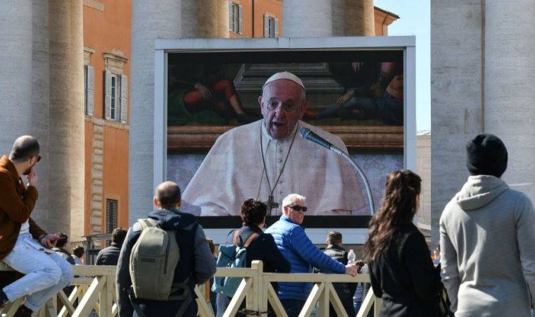 Vatikan, Pazar duası ve Çarşamba günkü genel kabul töreninin video bağlantısıyla yapılması kararının, San Pietro Meydanı'na girişler sırasında kalabalık arasında Covid-19 virüsünün yayılmasını önlemek amacıyla alındığını belirtti.