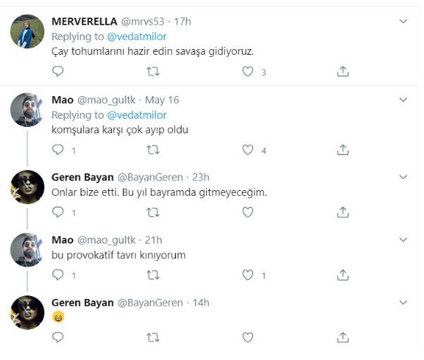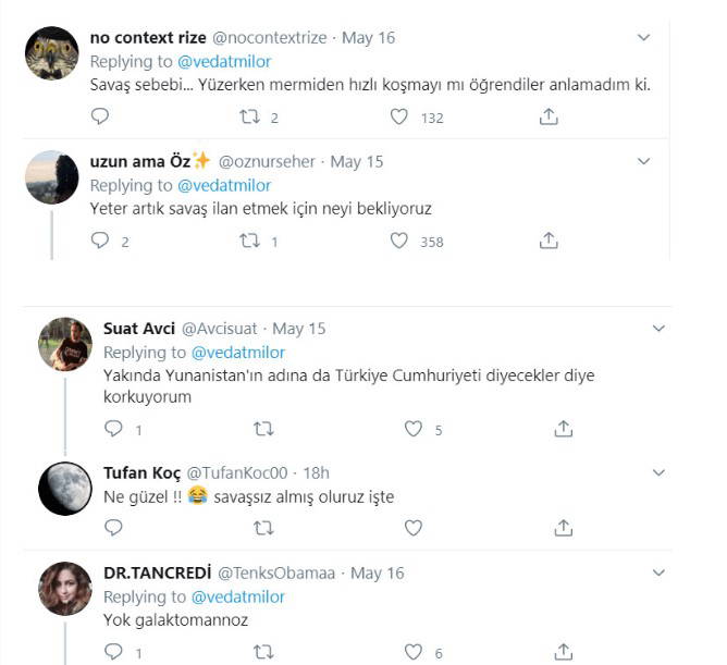 Milor’un mesajına esprili yanıtların yanı sıra çok sert tepkiler de geldi. Yunanistan’a savaş çağrısı yapanlar oldu.