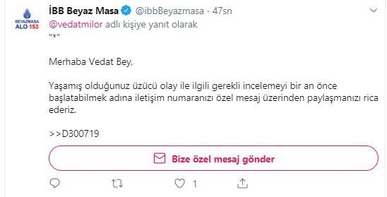 Adalar Belediye Başkanı Erdem Gül yaşanan olayın ardından Vedat Milor'e telefonla ulaştığını ve üzüntülerini ilettiğini söyledi. Gül, “Sayın Vedat Bey aradım, geçmiş olsun dileklerimi ilettim. Çok üzüldüğümü söyledim. Perşembe günü kendisini ziyaret edeceğm. Bu işgaller tüm Türkiye’de ve adalarda yaşanıyor. Biz zabıtayla çizgi çiziyoruz insanların orada rahat yürüyebilmesi için. Buna rağmen o işgaller sürüyor. Burada yaya kültürünü geliştirmemiz gerekir. Biz de orayı yaşanmaz hale getirirsek adanın anlamı olmaz. Vedat Bey’in yaşadığı olay büyük bir sıkıntı. Ben Belediye Mecilisi Üyemiz Fatma Hanım’la da görüştüm. Çok üzgün. Olmaması gereken bir olay. Gerekli yaptırımlar yapıldı, cezalar uygulandı. Daha tatsız şeyler de olabilir. Bundan sonra bunlara da izin vermeyeceğiz” dedi.