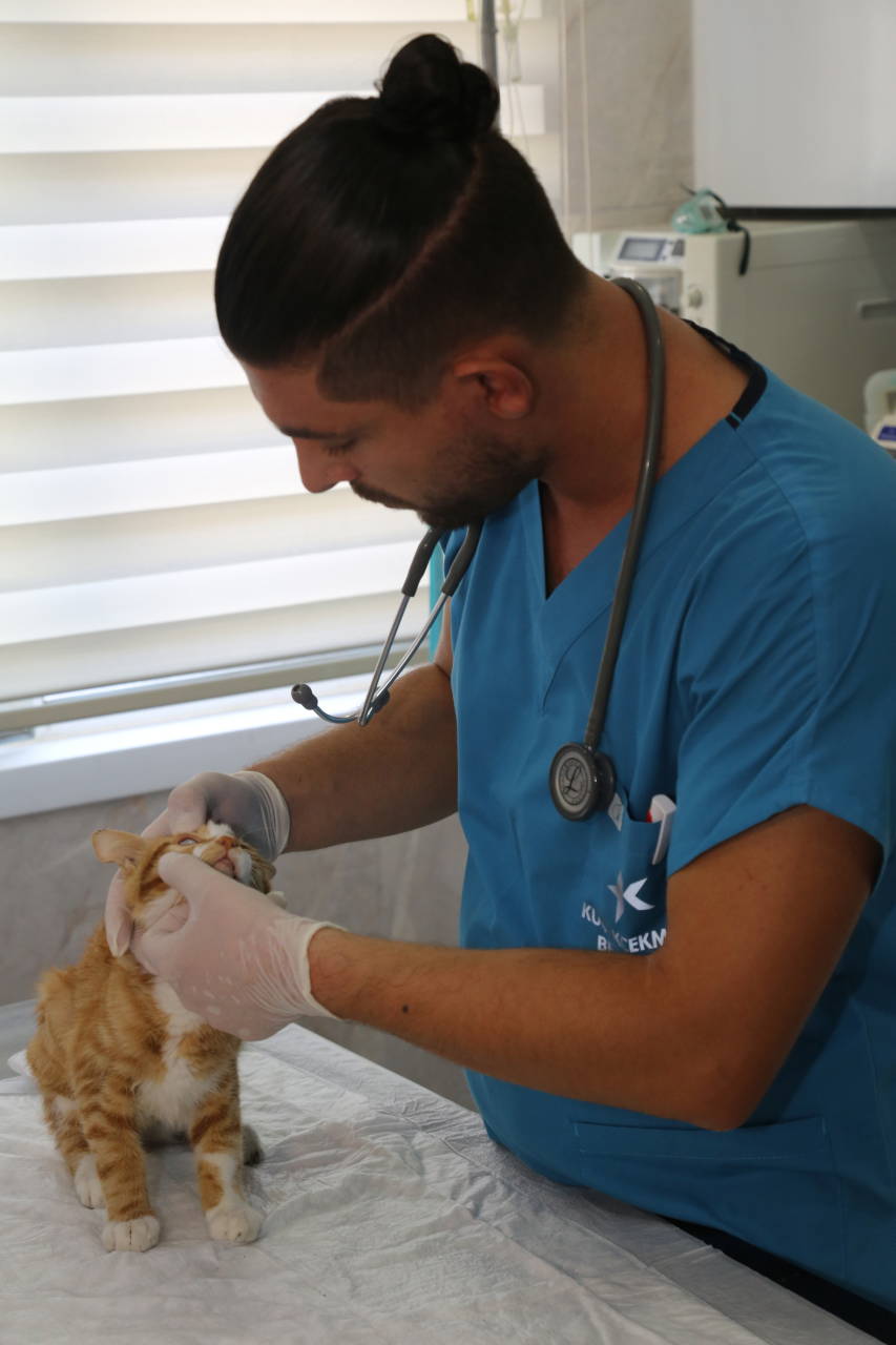 Kedinin merkeze getirildiğinde durumunun ağır olduğunu belirten Veteriner Mert Çağlar Kılıç, zorlu bir ameliyat süreci geçtiğini söyledi. Kılıç şöyle devam etti: