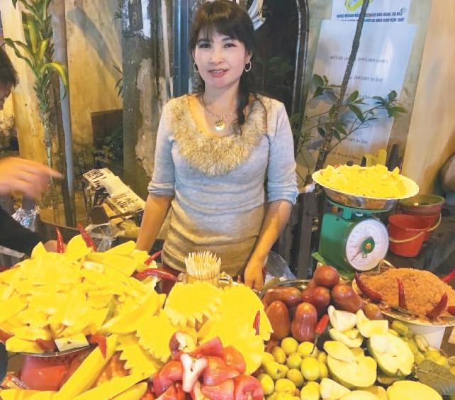 Hanoi sokaklarındaki yemiş satıcılarının çoğu kadın. Giysilerin ve tropikalimsi meyvelerin renkleri birbiriyle tam bir uyum içinde...