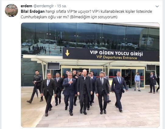'Bunu bir VIP krizi olarak değil, devletin valisine karşı yapılmış bir hakaret olarak tanımlamak ve böyle görmek durumundayız' açıklamasına sosyal medya kullanıcıları Bilal Erdoğan'ın VIP'i kullandığına dair görseli paşlaşarak eleştirdi.