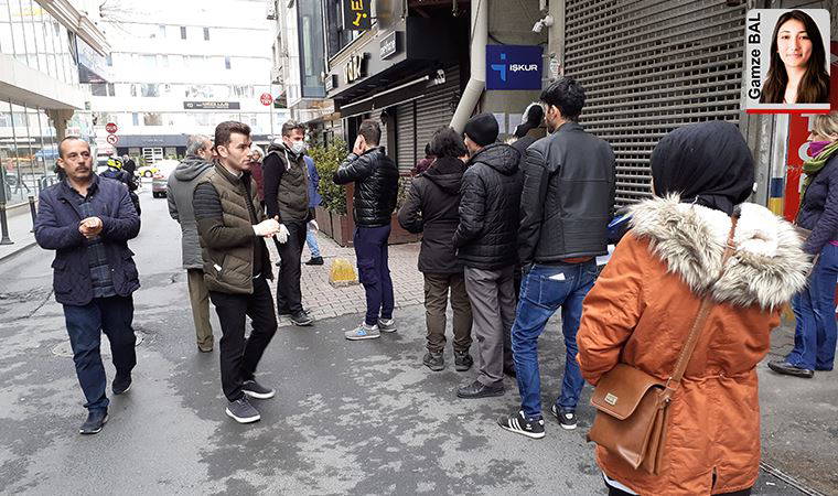Salgın nedeniyle işler durunca otel çalışanından kuaförüne, tekstil işçisinden garsonuna ya işsiz kalan ya da ücretsiz izne çıkarılan emekçiler, dün Şişli’deki İŞKUR önünde uzun kuyruklar oluşturdu.