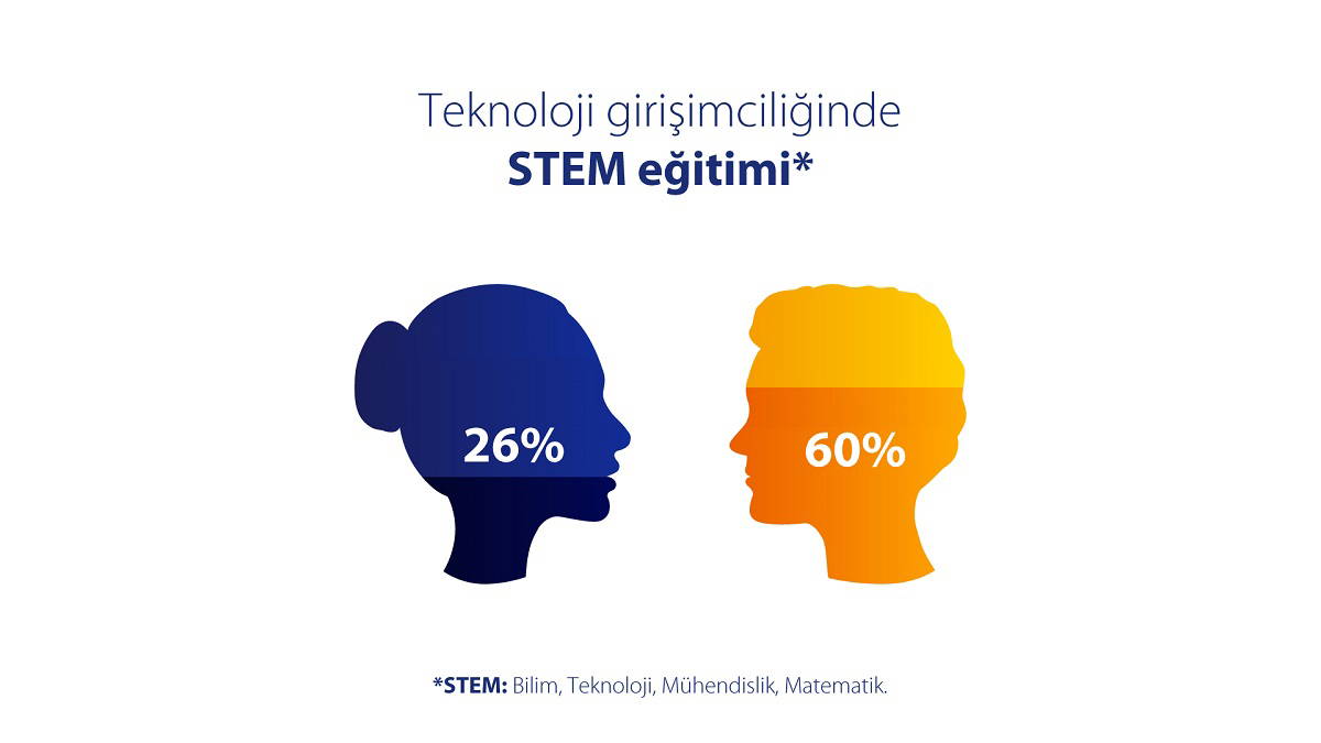 Araştırmanın öne çıkan bulguları arasında, kadın teknoloji girişimcilerinden üniversitede STEM (Bilim, Teknoloji, Mühendislik, Matematik) eğitimi alanların oranının düşüklüğü göze çarpıyor. Buna göre STEM eğitimli teknoloji girişimcisi kadınların oranı %26 iken bu oran erkeklerde %60’lar seviyesine çıkıyor. Teknoloji girişimciliğinde STEM eğitimi almış olmak şirket kurucularının yaptıkları işe hakimiyetleri ve dış kaynaklara daha az bağımlı olmalarıyla ilişkilendiriliyor.